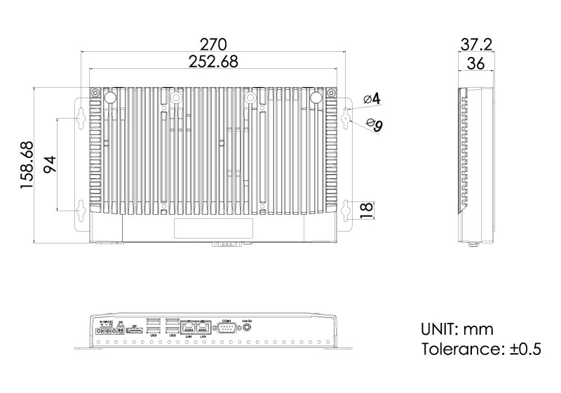 252.7 x 158.7 x 36 mm (without wall bracket)