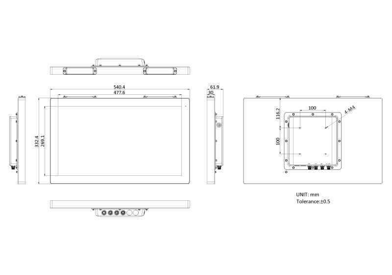 Power supply: 1 × M12 3-pin for DC power supply with waterproof termination, 1 × on/off switch on the rear panel